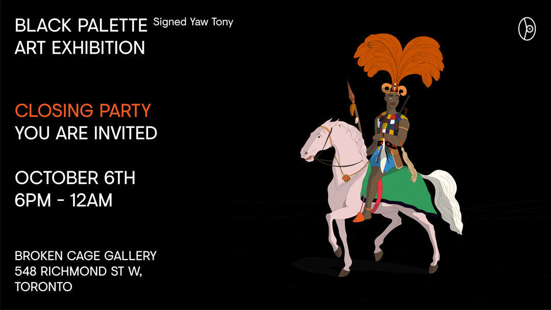 The newest exhibition and collection of art from artist Yaw Tony. Black Pallet is on display at Broken Cage Gallery: 548 Richmond St. West, Toronto. An amazing collection of work from this Canadian artist.